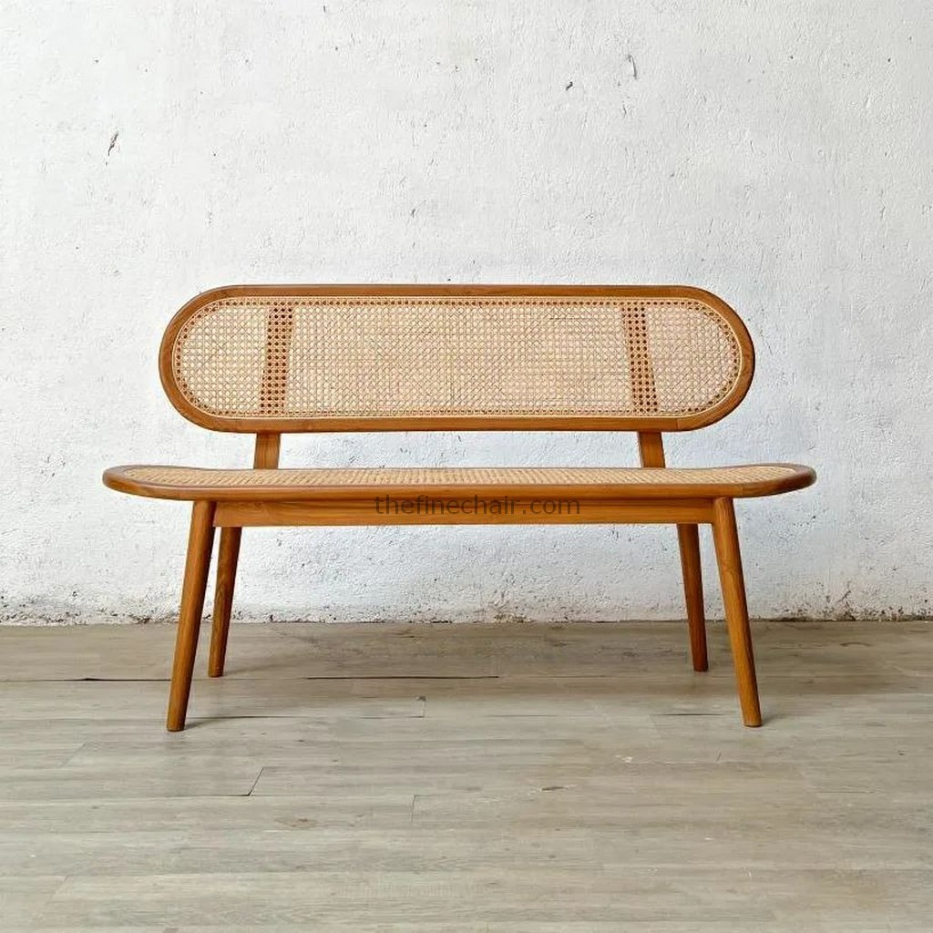 Teak Wood & Woven Rattan Bench Seat & Backrest